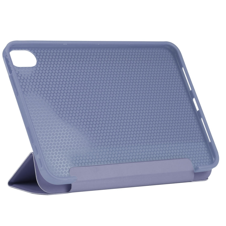 For iPad mini 6 / mini 2024 3-folding TPU Horizontal Flip Leather Tablet Case with Holder(Lavender Grey)