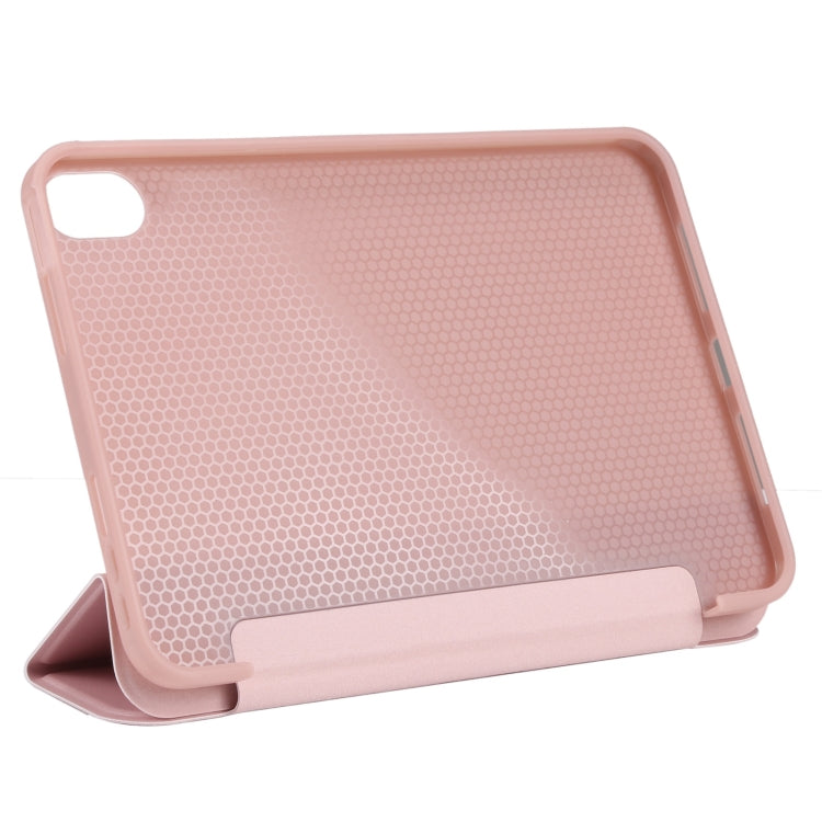 For iPad mini 6 / mini 2024 3-folding TPU Horizontal Flip Leather Tablet Case with Holder(Rose Gold)