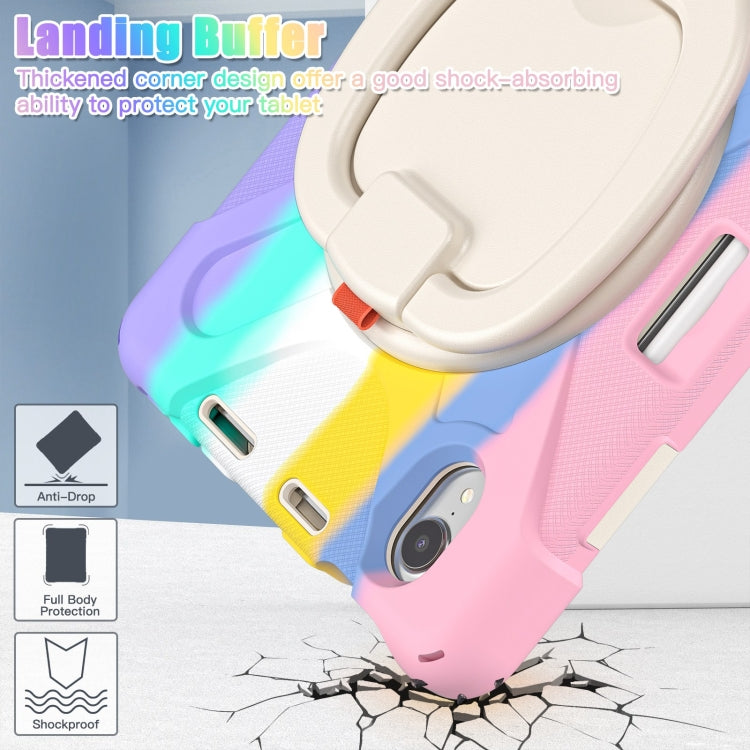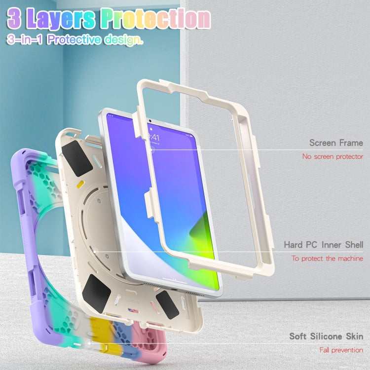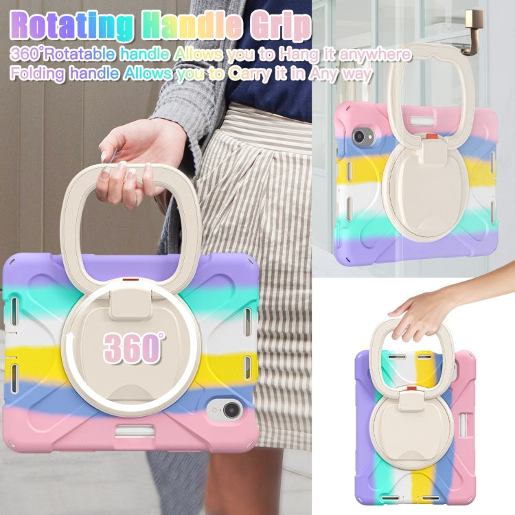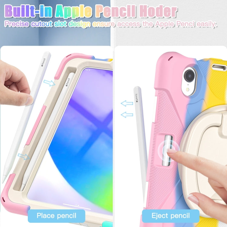 For iPad mini 6 / mini 2024 Heavy Duty Silicone Hybrid PC Tablet Case with Holder & Shoulder Strap(Colorful Pink)
