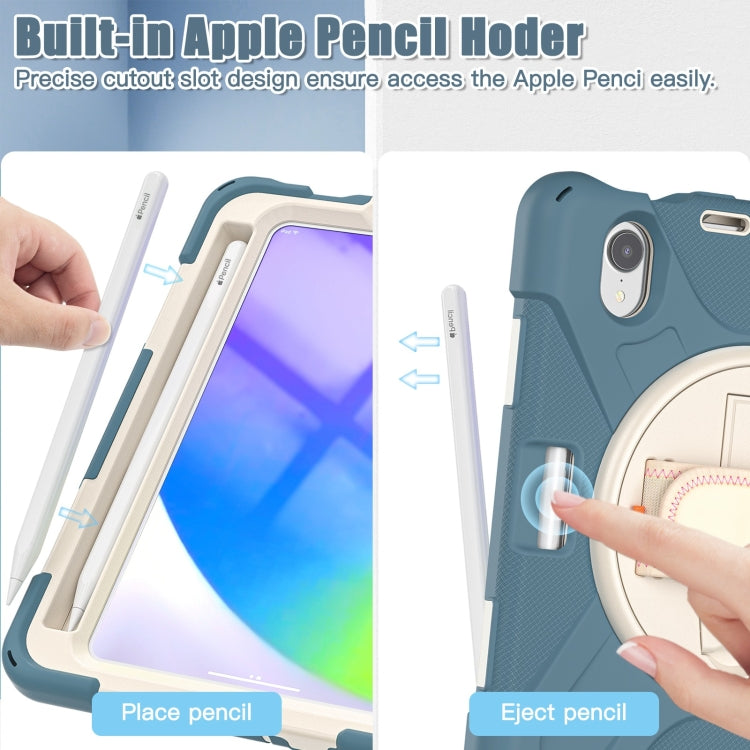 For iPad mini 6 / mini 2024 Silicone Hybrid PC Tablet Case with Grip Holder & Shoulder Strap(Cornflower Blue)