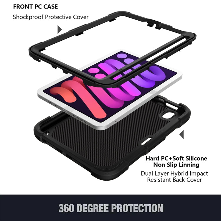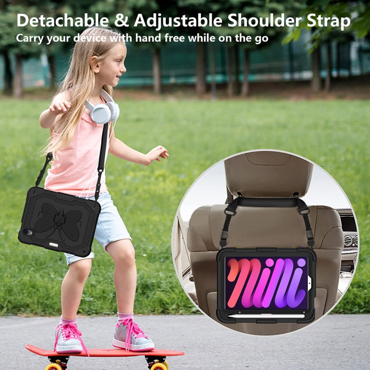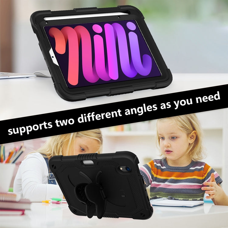 For iPad mini 6 / mini 2024 Pure Color PC + Silicone Anti-drop Protective Tablet Case with Butterfly Shape Holder & Pen Slot(Black)
