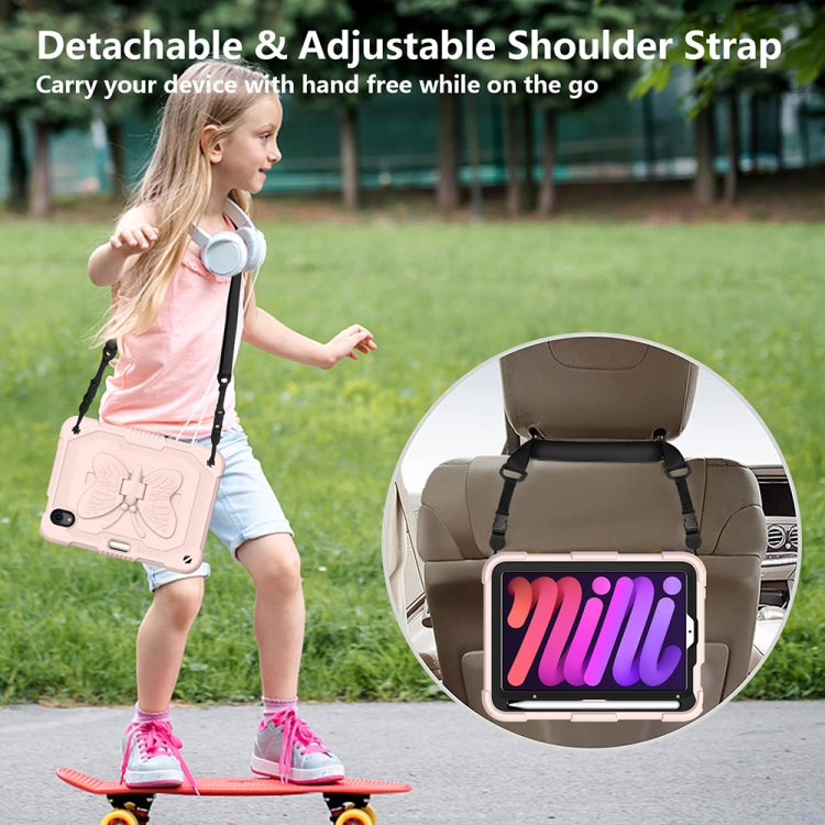 For iPad mini 6 / mini 2024 Pure Color PC + Silicone Anti-drop Protective Tablet Case with Butterfly Shape Holder & Pen Slot(Rose Pink)