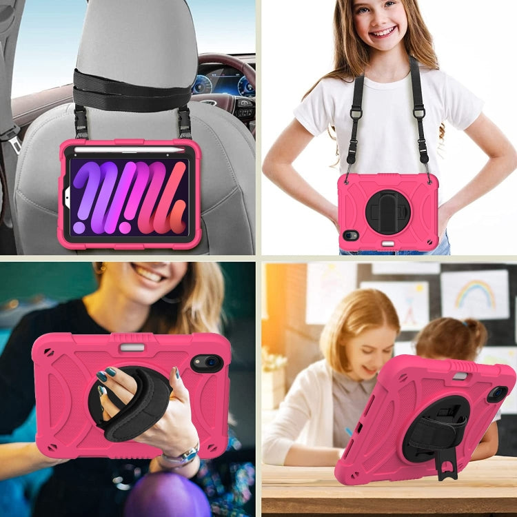 For iPad mini 6 / mini 2024 PC Hybrid Silicone Tablet Case with Holder & Hand Strap & Shoulder Strap(Rose Red)