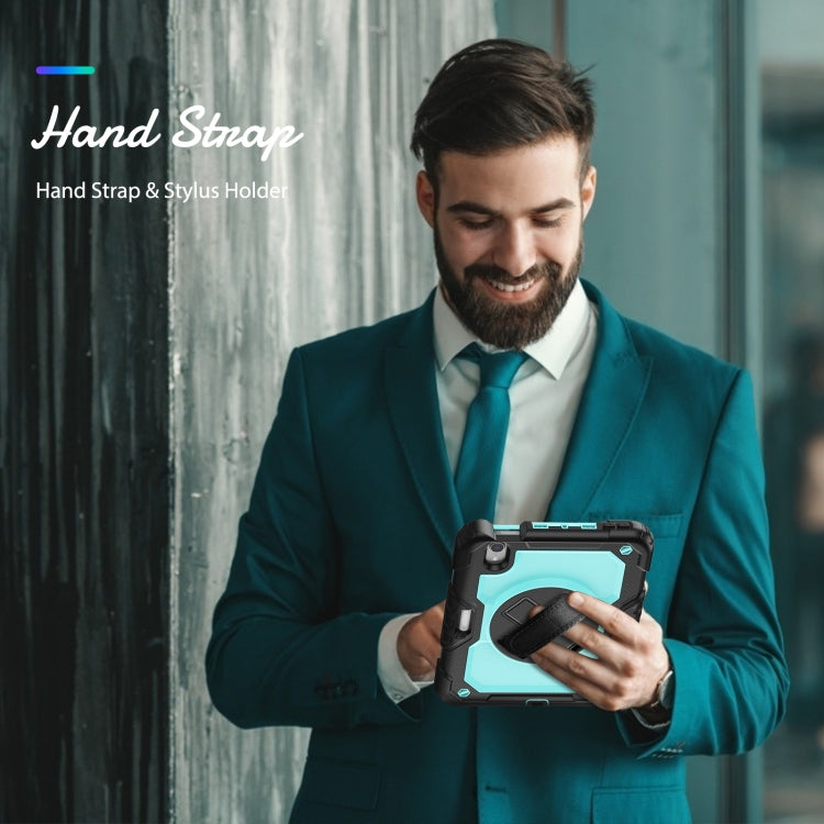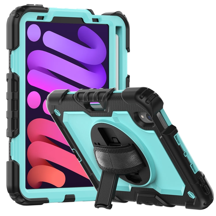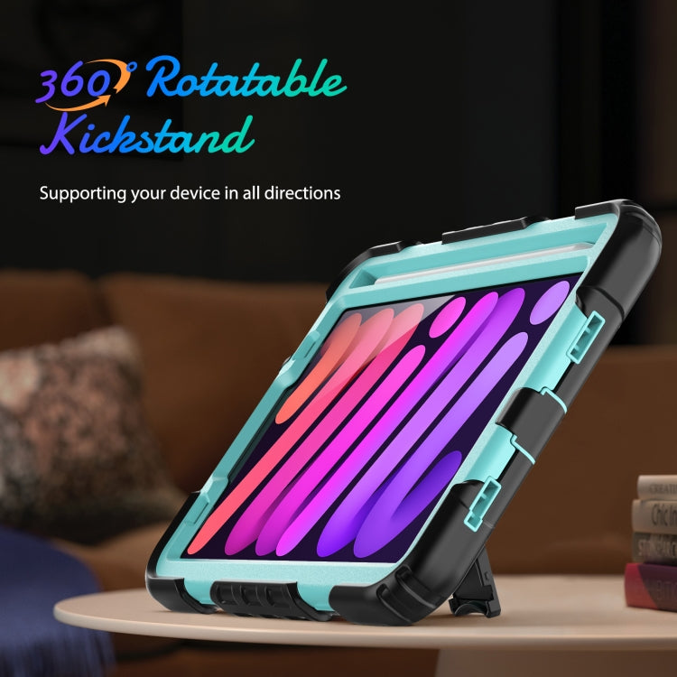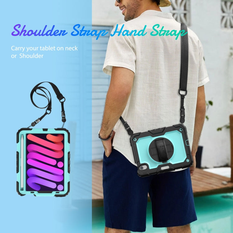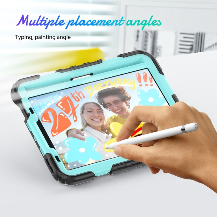 For iPad mini 2024 / mini 6 Shockproof Silicone + PC Protective Tablet Case with Holder & Shoulder Strap & Pen Slot(Light Blue + Black)