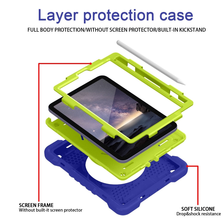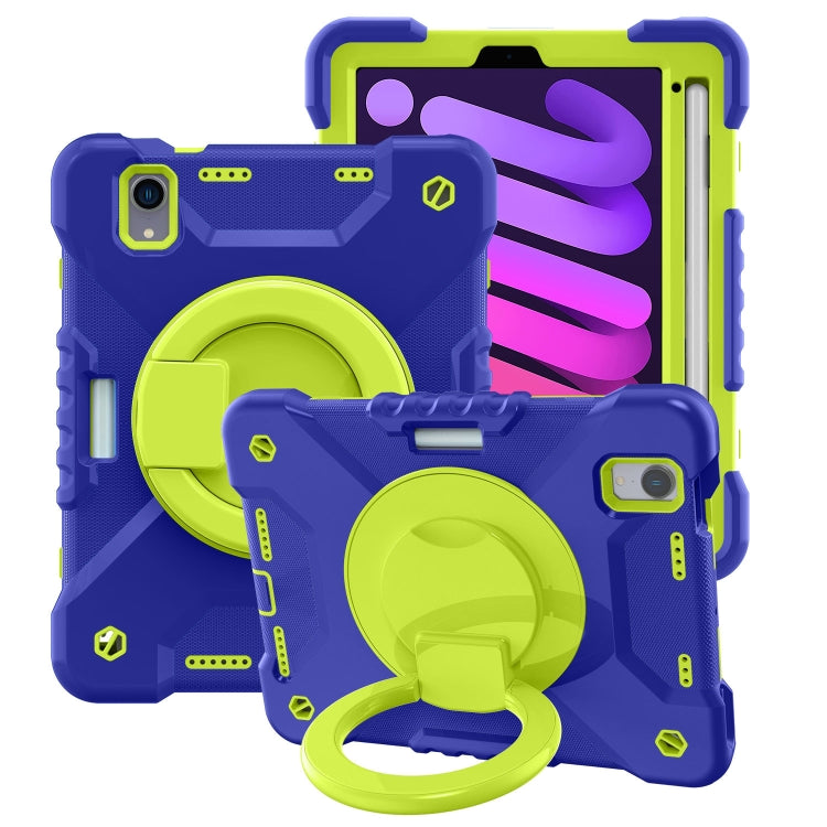 For iPad mini 2024 / mini 6 Silicone + PC Tablet Case with Strap & Holder & Pen Slot(Navy Blue + Green)