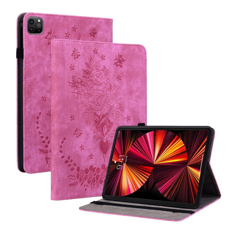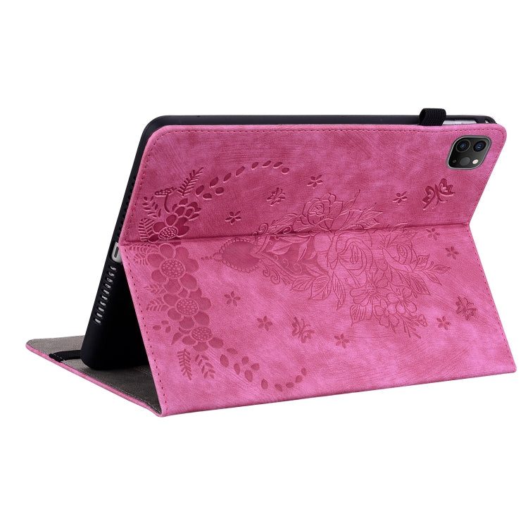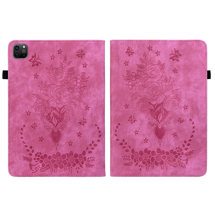 For iPad Pro 11 2021 / Air 4 2020 Butterfly Rose Embossed Leather Smart Tablet Case(Rose Red)