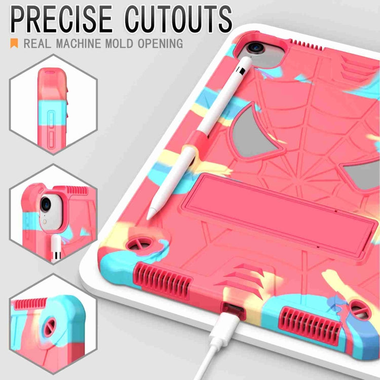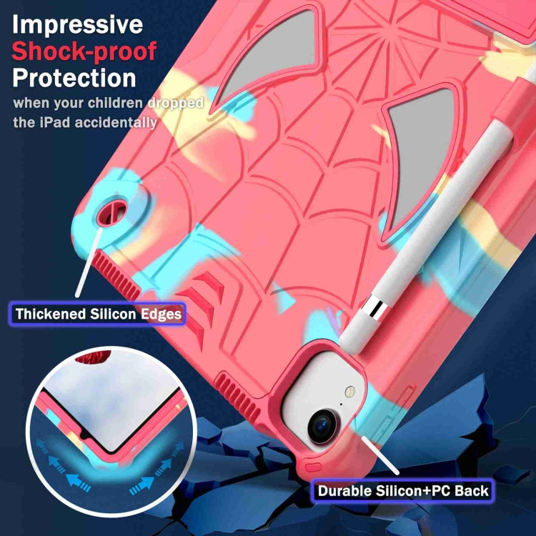 For iPad Pro 11 2021 / Air 5 10.9 Spider Texture Silicone Hybrid PC Tablet Case with Shoulder Strap(Camouflage + Rose Red)