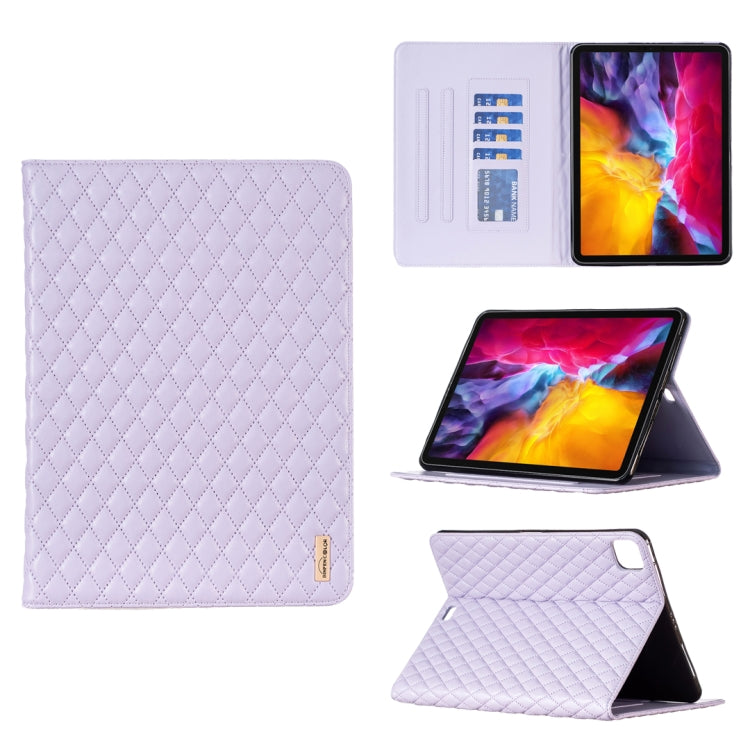 For iPad Pro 11 2022 / 2021 / 2020 Elegant Rhombic Texture Horizontal Flip Leather Tablet Case(Purple)