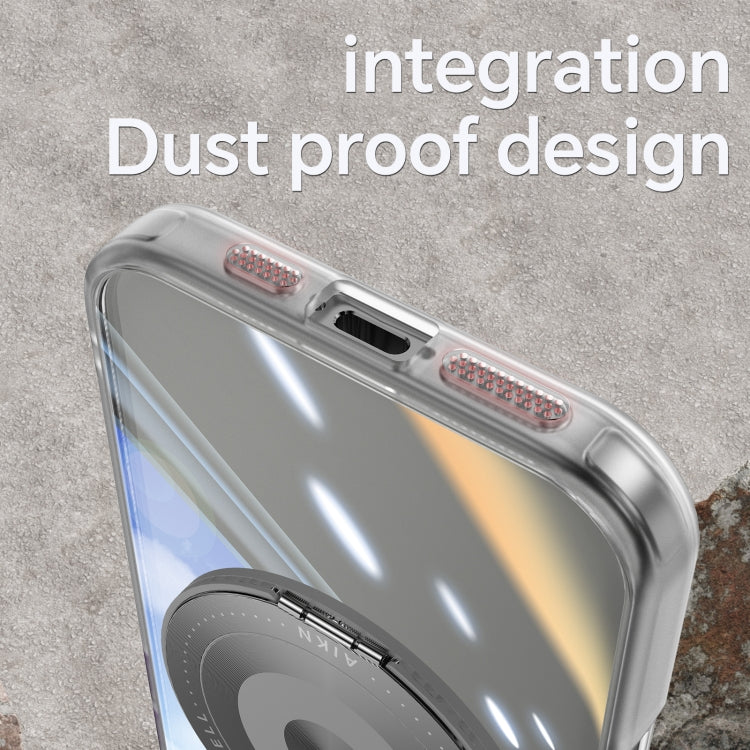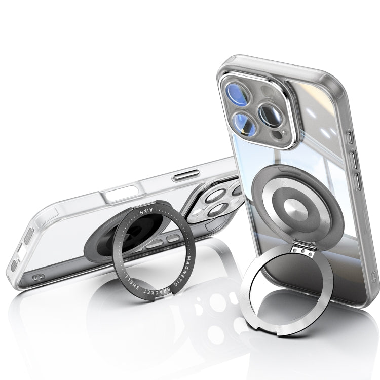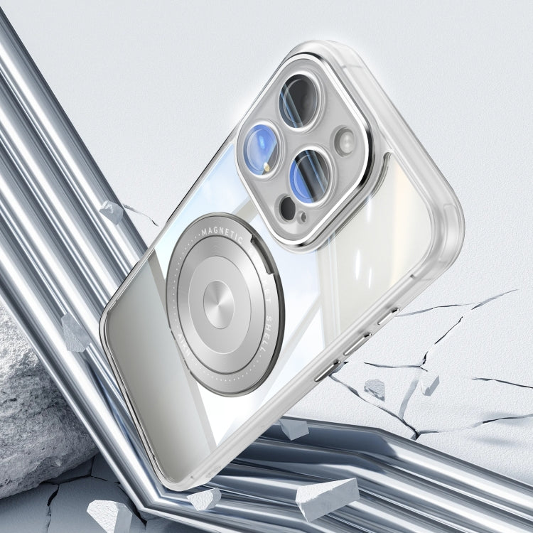 For iPhone 16 Pro Max 360 Holder Magsafe Acrylic Hybrid TPU Phone Case(Frosted White)