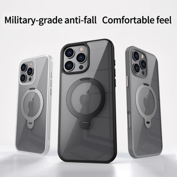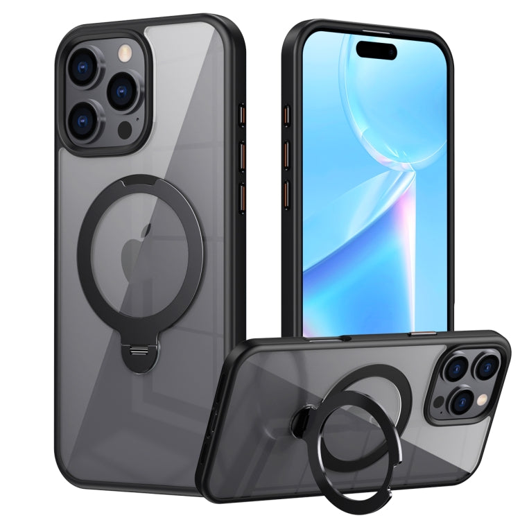 For iPhone 16 Pro Transparent MagSafe Magnetic Rotating Ring Holder Phone Case(Black)