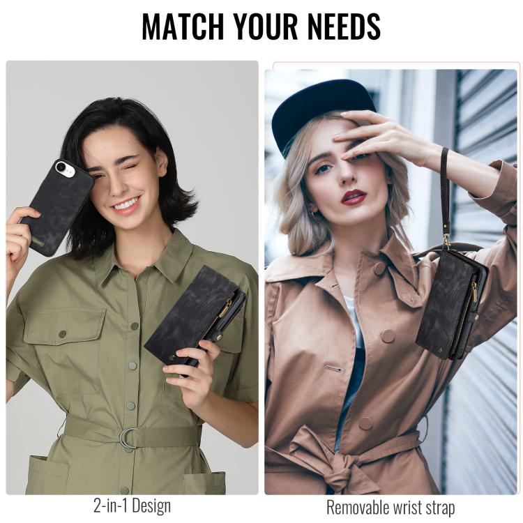 For iPhone 16e CaseMe 008 Detachable Multifunctional Leather Phone Case(Black)