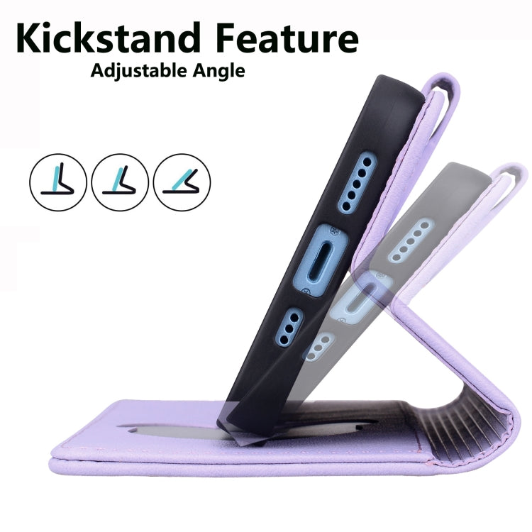 For iPhone 16e Cute Cat Embossed Leather Phone Case(Purple)