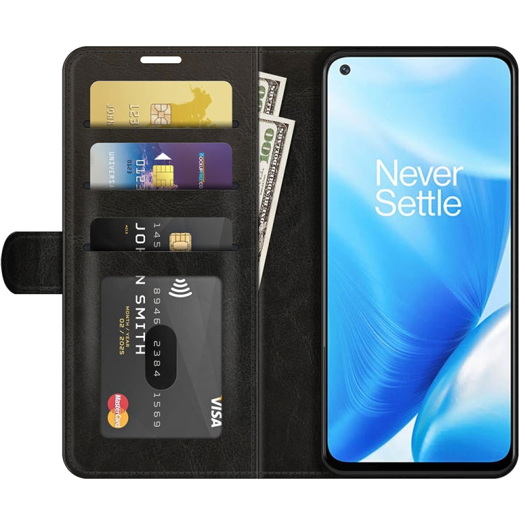 For OnePlus Nord N200 5G R64 Texture Single Horizontal Flip Protective Case with Holder & Card Slots & Wallet& Photo Frame(Black)