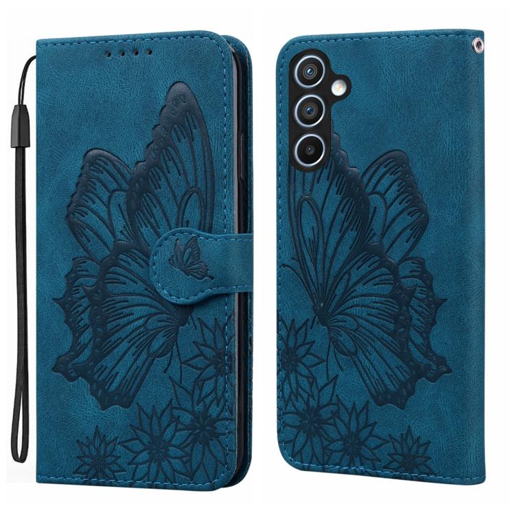 For Samsung Galaxy A16 5G Retro Skin Feel Butterflies Embossing Horizontal Flip Leather Phone Case(Blue)