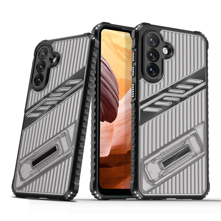 For Samsung Galaxy A34 5G Plating Holder PC Hybrid TPU Phone Case(Gray Black)