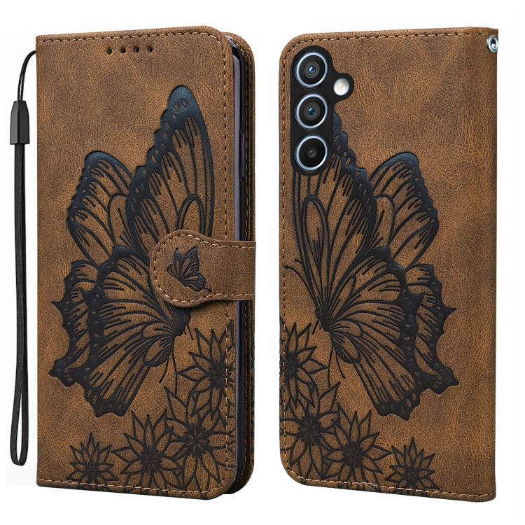 For Samsung Galaxy A56 5G Retro Skin Feel Butterflies Embossing Horizontal Flip Leather Phone Case(Brown)