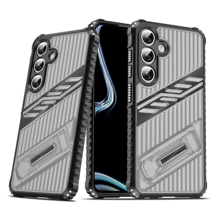 For Samsung Galaxy S24+ / S25+ 5G Plating Holder PC Hybrid TPU Phone Case(Gray Black)