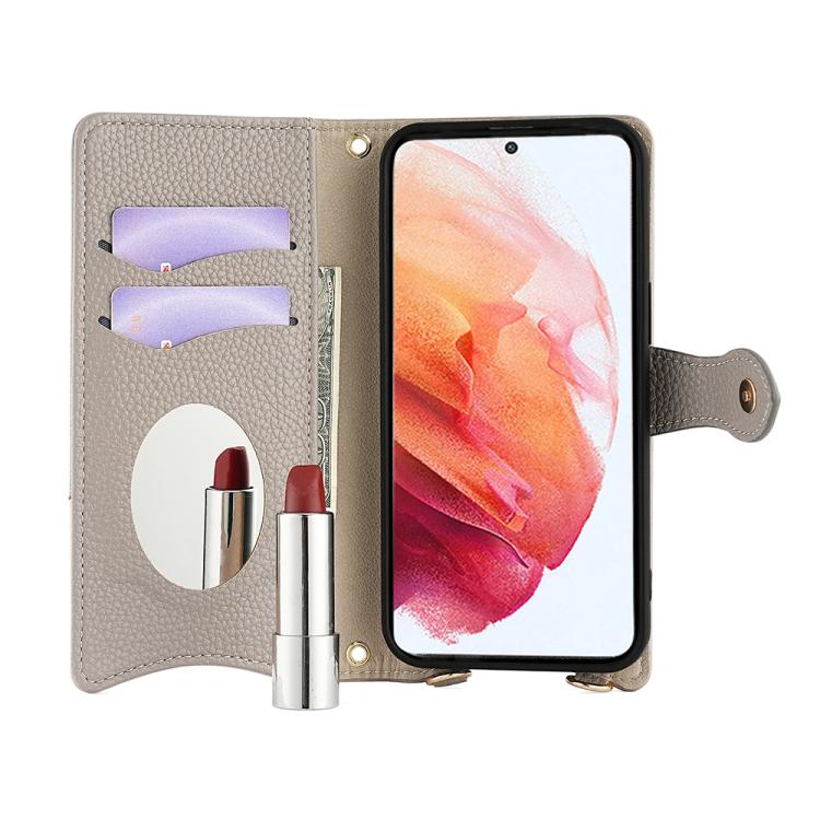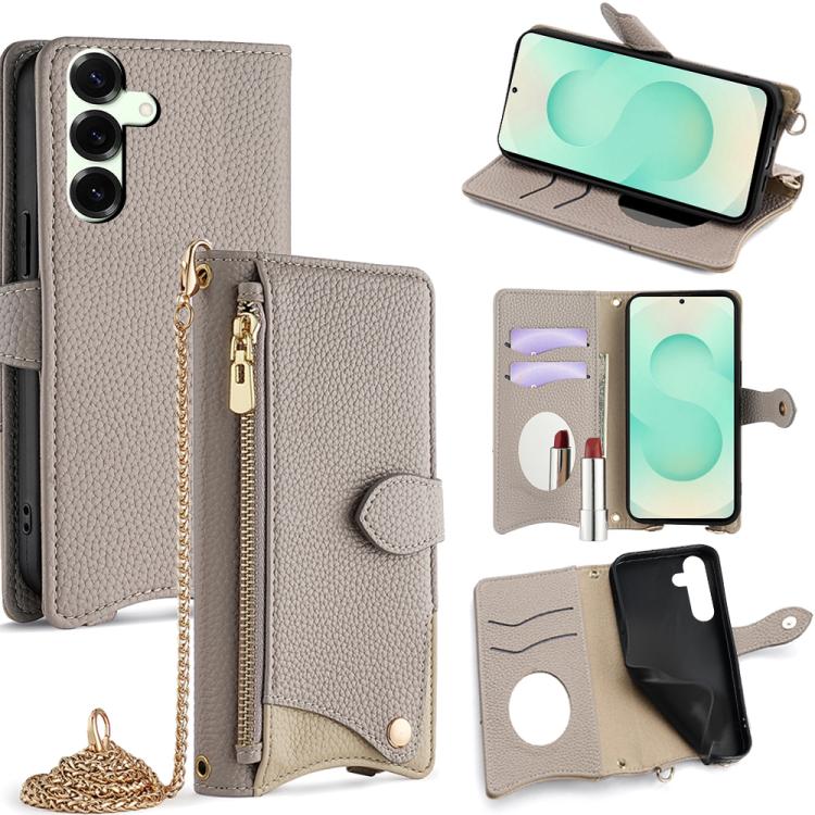 For Samsung Galaxy S25+ 5G Crossbody Chain Fishtail Litchi Leather Phone Case(Grey)