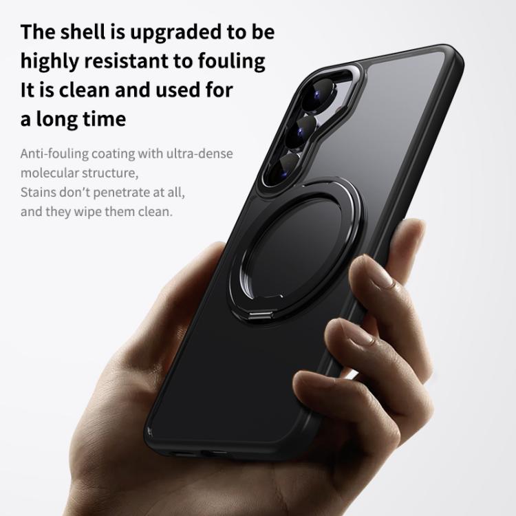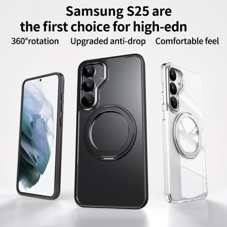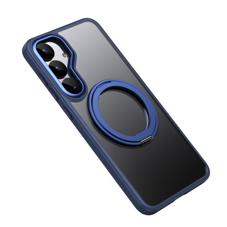 For Samsung Galaxy S25 5G Frosted 360 Degree MagSafe Magnetic Holder Phone Case(Blue)