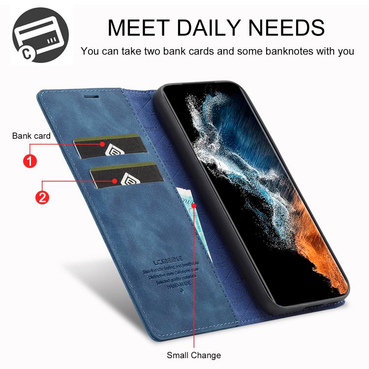 For Samsung Galaxy S25+ 5G LC.IMEEKE Strong Magnetism Microfiber Leather Phone Case(Blue)