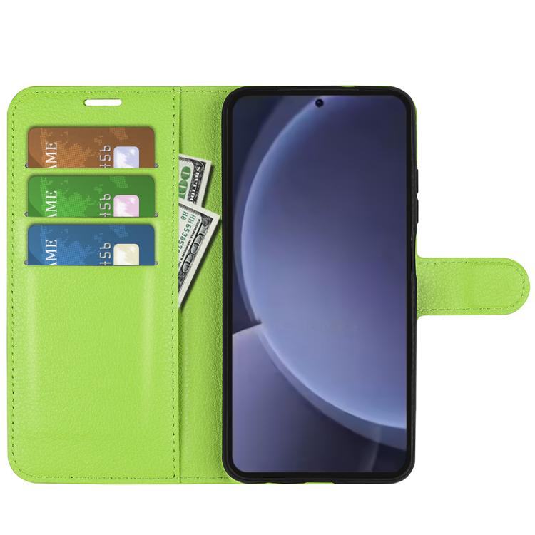 For Samsung Galaxy S25+ 5G Litchi Texture Horizontal Flip Leather Phone Case with Holder(Green)