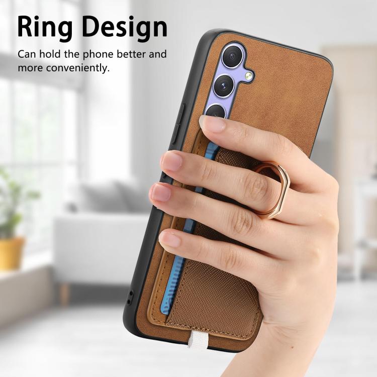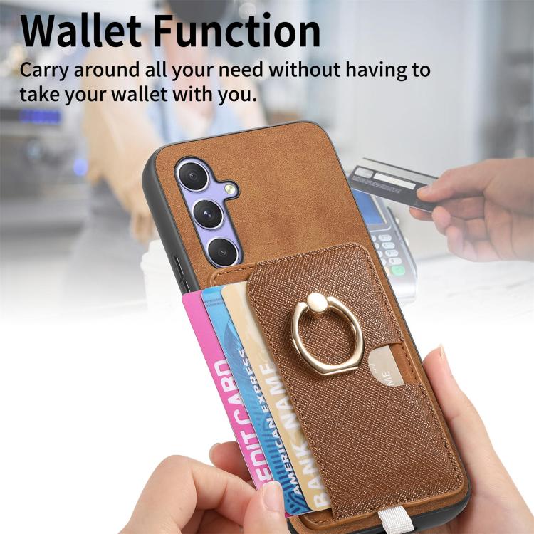 For Samsung Galaxy S25 5G Retro Cross Leather Ring Side Insert Card Bag MagSafe Phone Case(Brown)