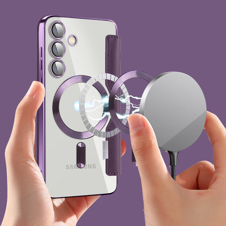For Samsung Galaxy S25+ 5G Shield MagSafe RFID Anti-theft Leather Phone Case(Purple)