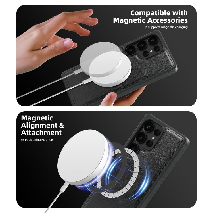 For Samsung Galaxy S25+ 5G Shield Multi-functional MagSafe Card Bag Phone Case(Black)