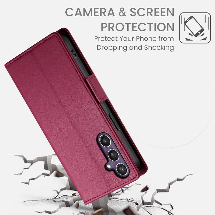 For Samsung Galaxy S25 5G Side Buckle Magnetic Frosted Leather Phone Case(Wine Red)