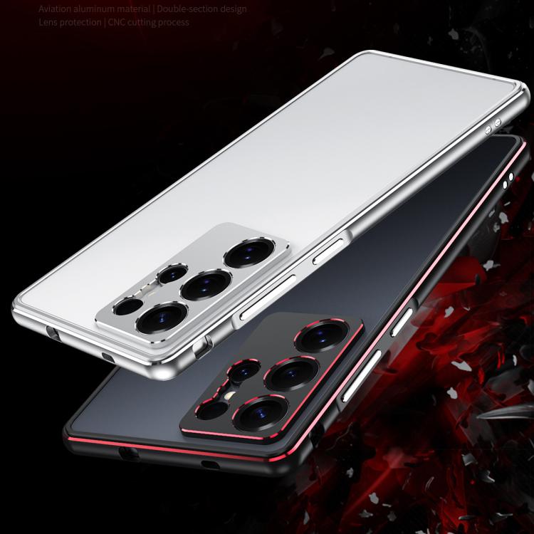 For Samsung Galaxy S25 Ultra 5G Aurora Series Lens Protector + Metal Frame Phone Case(Black Red)