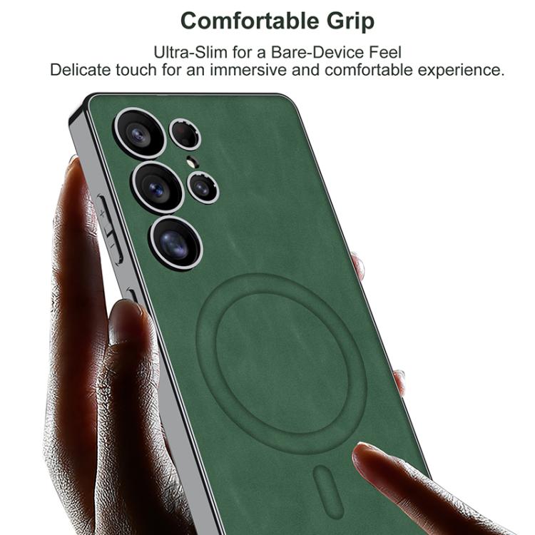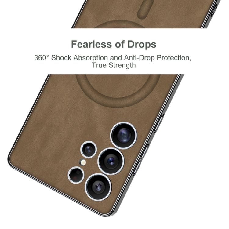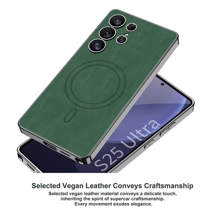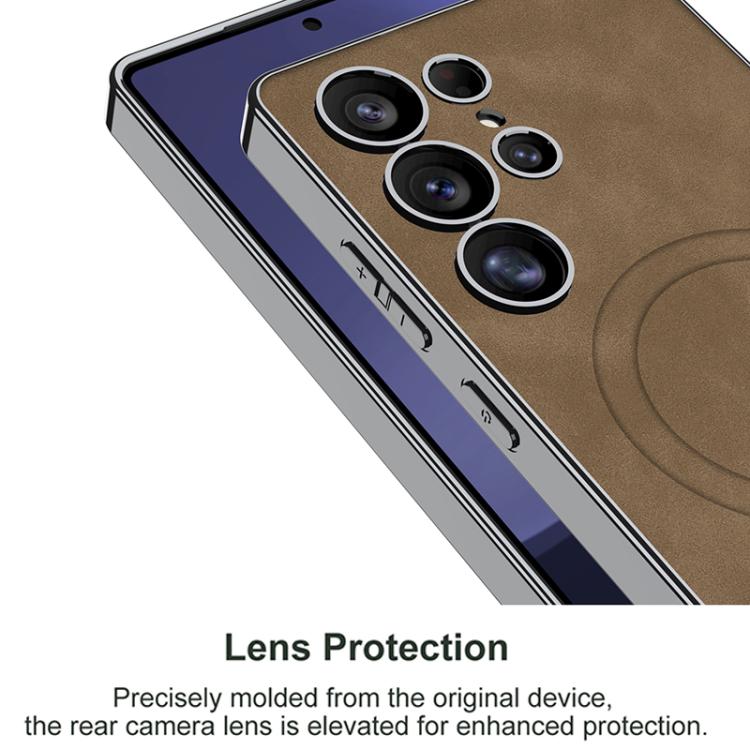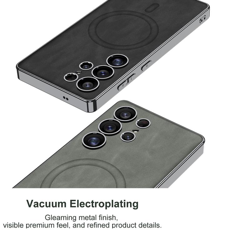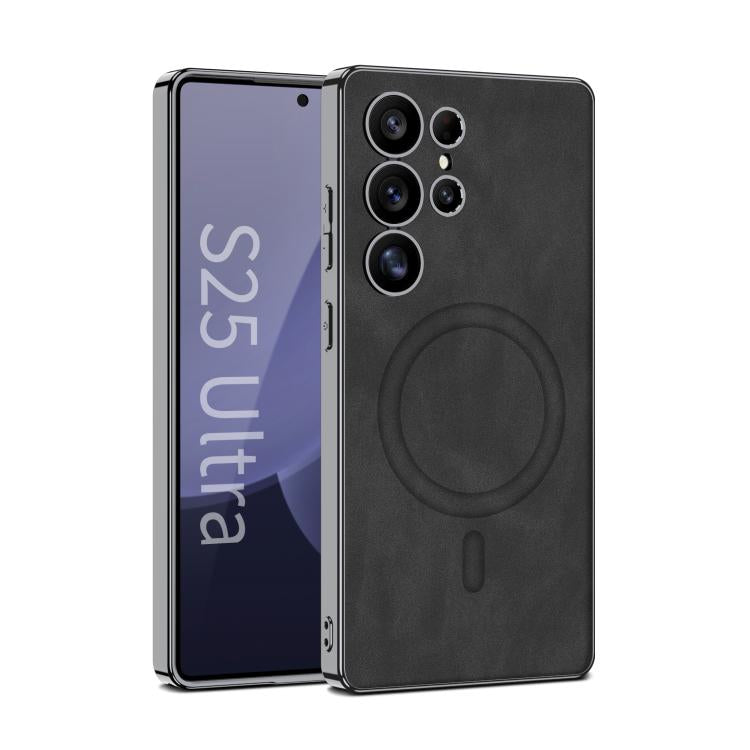 For Samsung Galaxy S25 Ultra 5G GKK Plating Leather Built-in MagSafe Frosted Phone Case(Black)