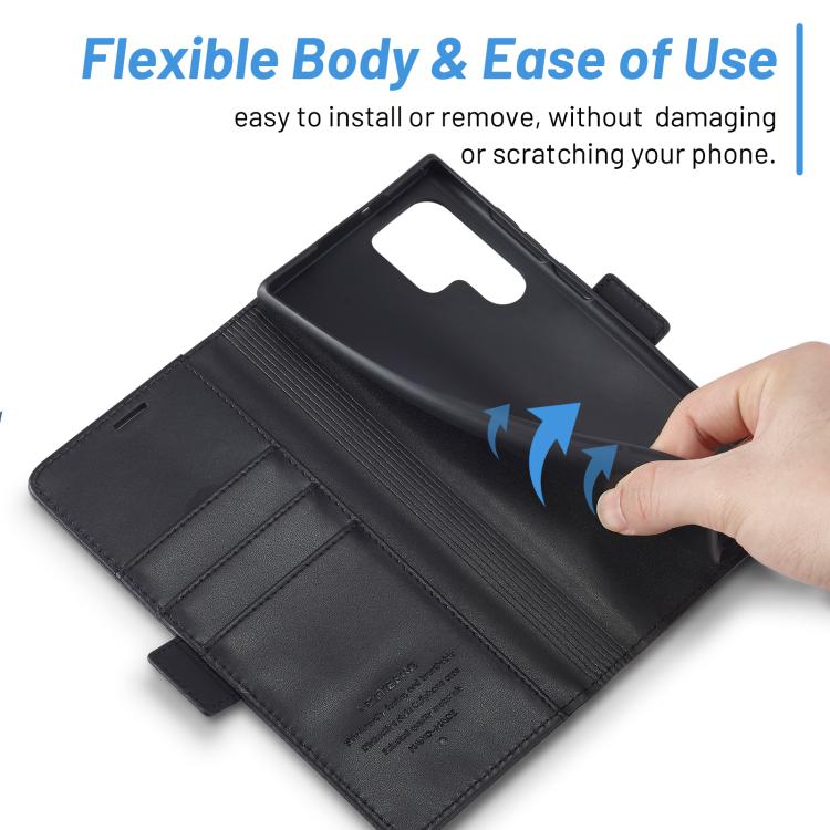 For Samsung Galaxy S25 Ultra 5G LC.IMEEKE Card Slots Skin Feeling Leather Phone Case(Black)