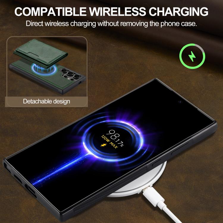 For Samsung Galaxy S25 Ultra 5G LC.IMEEKE L5 Series Detachable RFID Card Bag Magsafe Phone Case(Green)