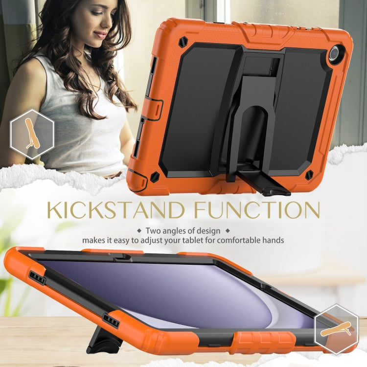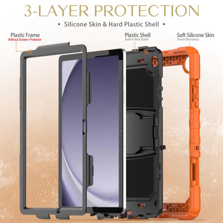 For Samsung Galaxy Tab A11+ / A9+ Silicone Hydric PC Tablet Case with Shoulder Strap & Holder(Orange)