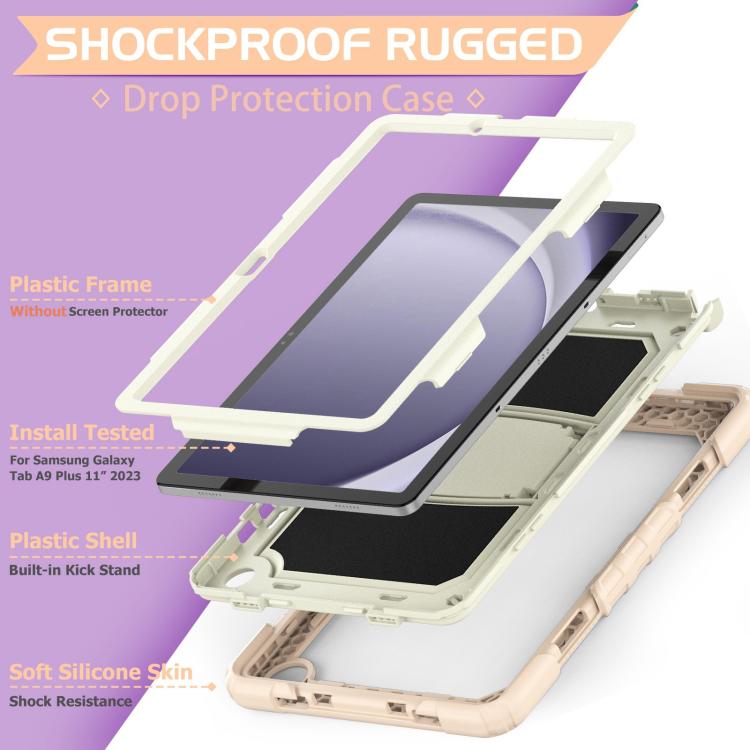 For Samsung Galaxy Tab A11+ / A9+ Silicone Hydric PC Tablet Case with Shoulder Strap & Holder(Rose Gold)