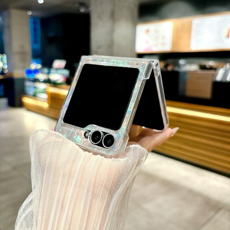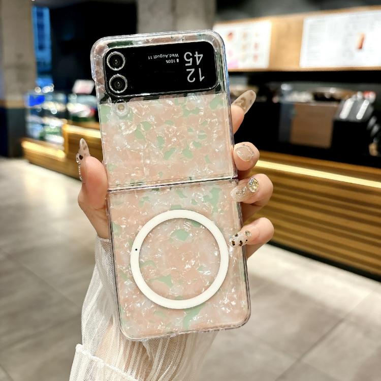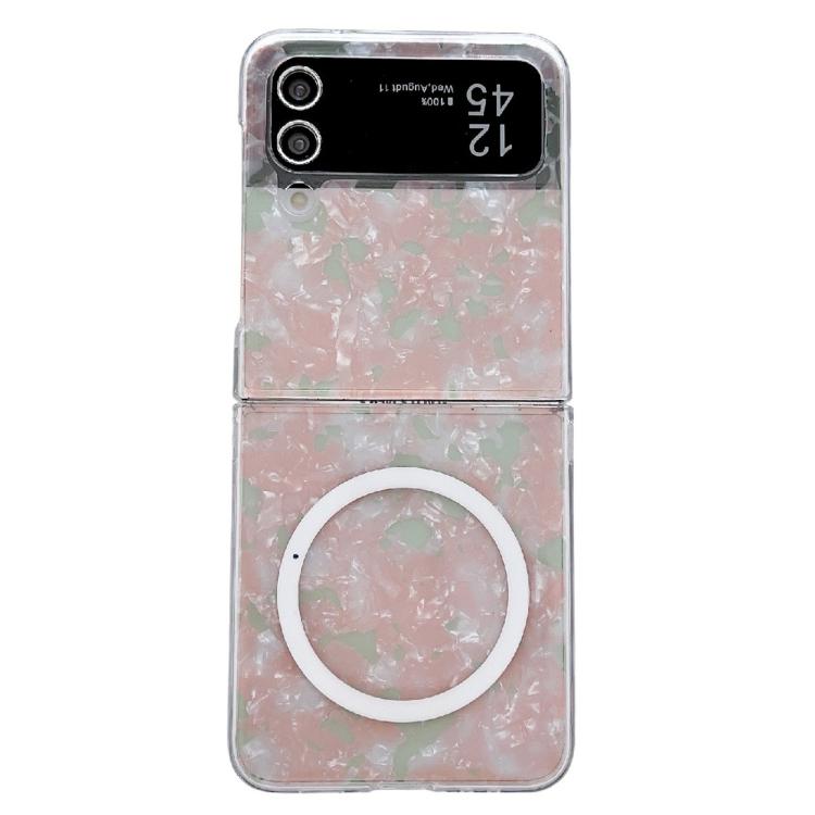 For Samsung Galaxy Z Flip4 Pearlescent Shell Texture MagSafe Phone Case(Pink Green)