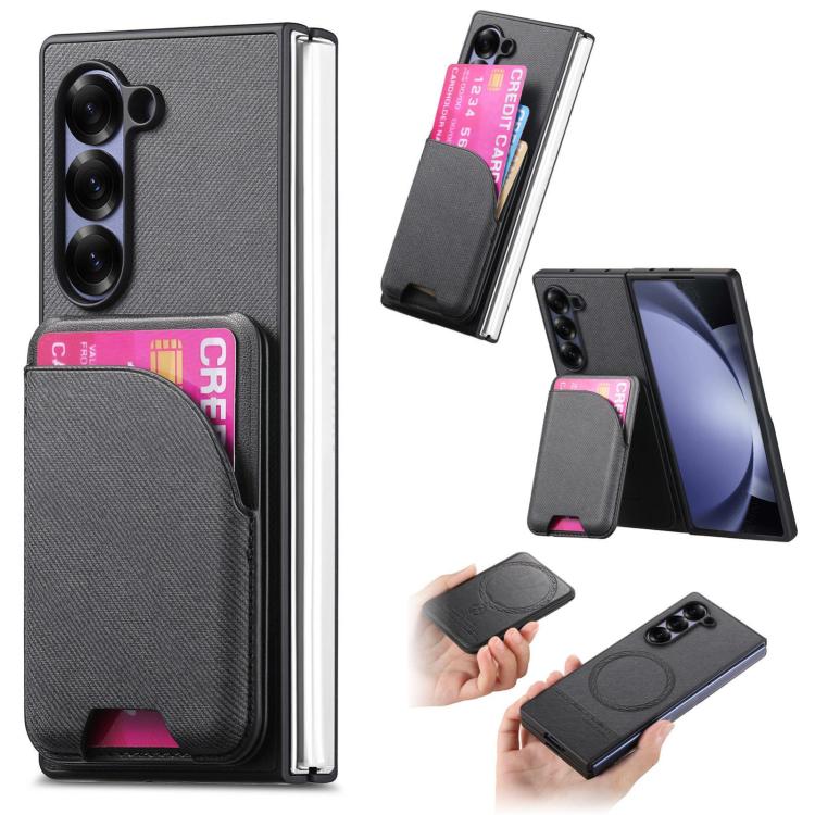 For Samsung Galaxy Z Fold5 Twill Fabric Leather Skin Card Bag Magnetic Back Phone Case(Black)