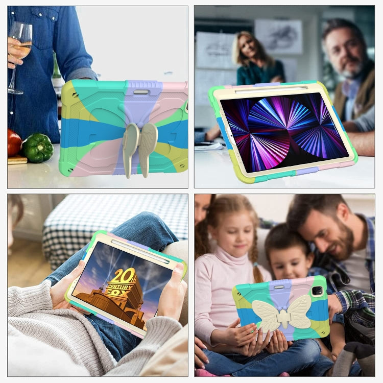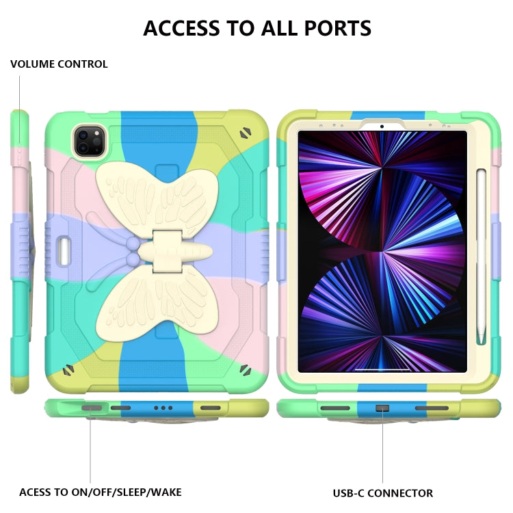 PC + Silicone Anti-drop Tablet Tablet Case with Butterfly Holder & Pen Slot for iPad Pro 11 2018 & 2020 & 2021 & Air 2020 10.9(Colourful Green)