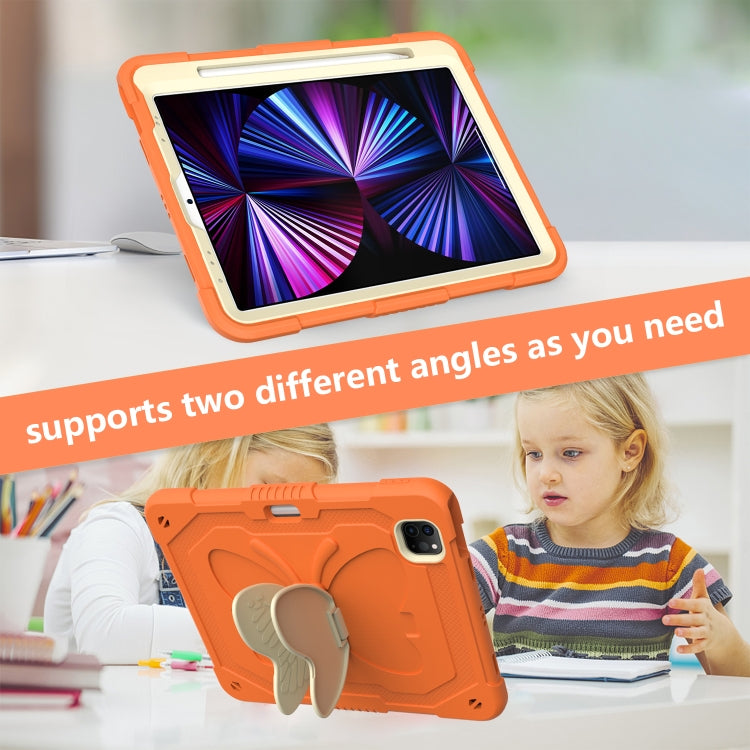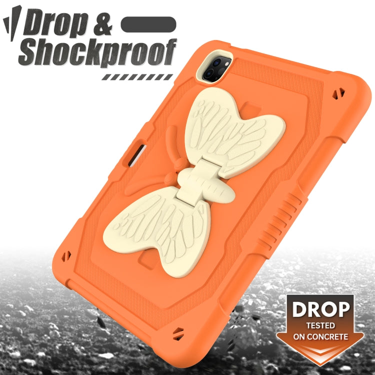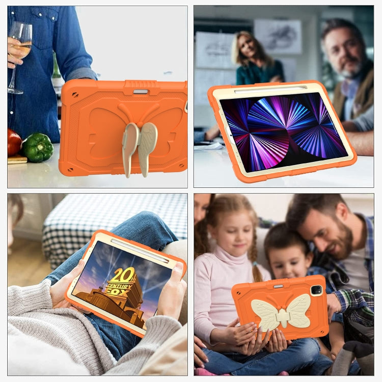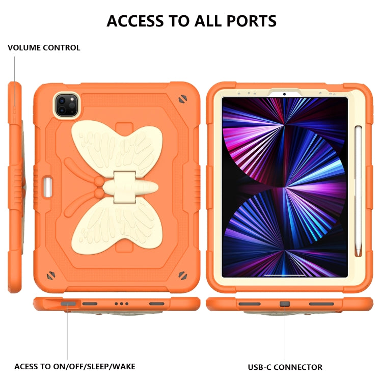PC + Silicone Anti-drop Tablet Tablet Case with Butterfly Holder & Pen Slot for iPad Pro 11 2018 & 2020 & 2021 & Air 2020 10.9(Gream+Kumquat)
