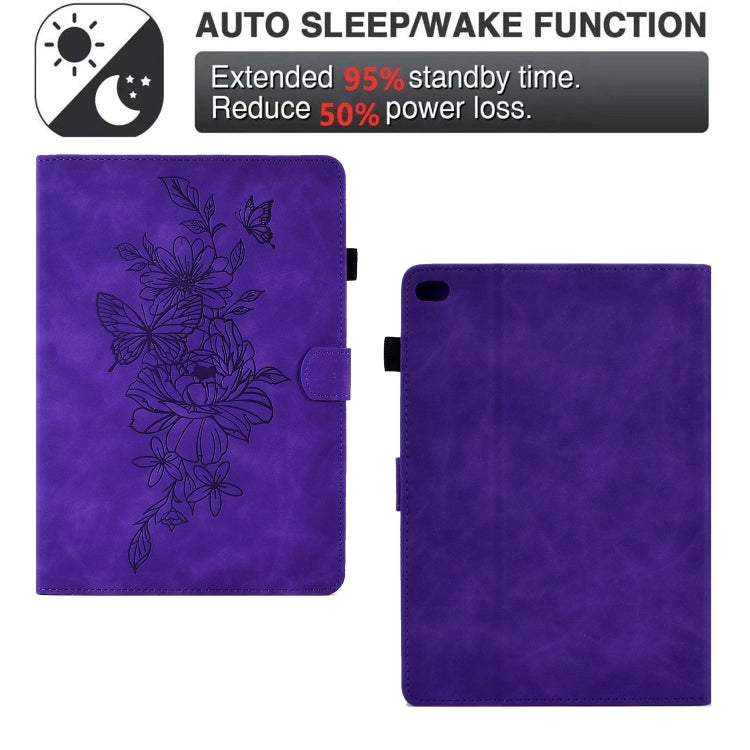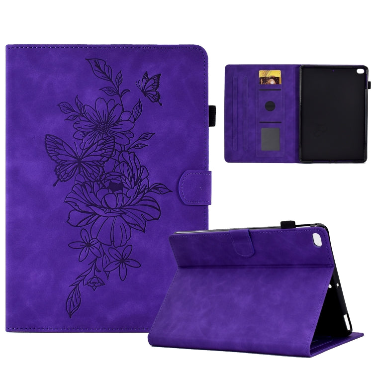 Peony Butterfly Embossed Leather Smart Tablet Case For iPad Air / Air 2 / 9.7 2017 / 9.7 2018(Purple)