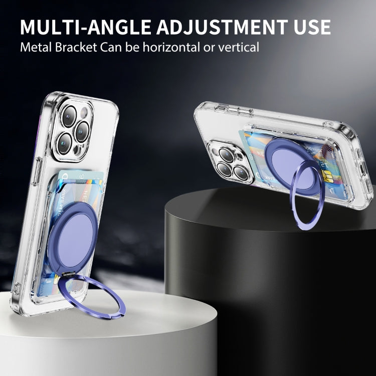 Transparent PC Magnetic Card Bag with 360 Degree Rotating Ring Holder(Light Purple)