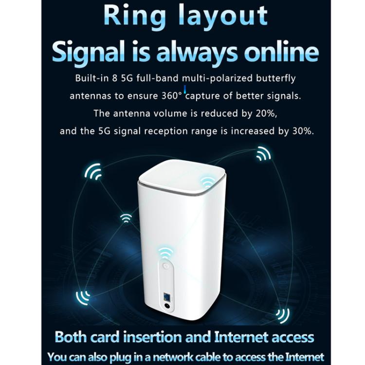 5G CPE Wi-Fi 6 Wireless SIM Card Router Dual-Mode NSA/SA High-Speed Gigabit Single-Port LTE Router, EU Plug(Asia-Pacific Version)