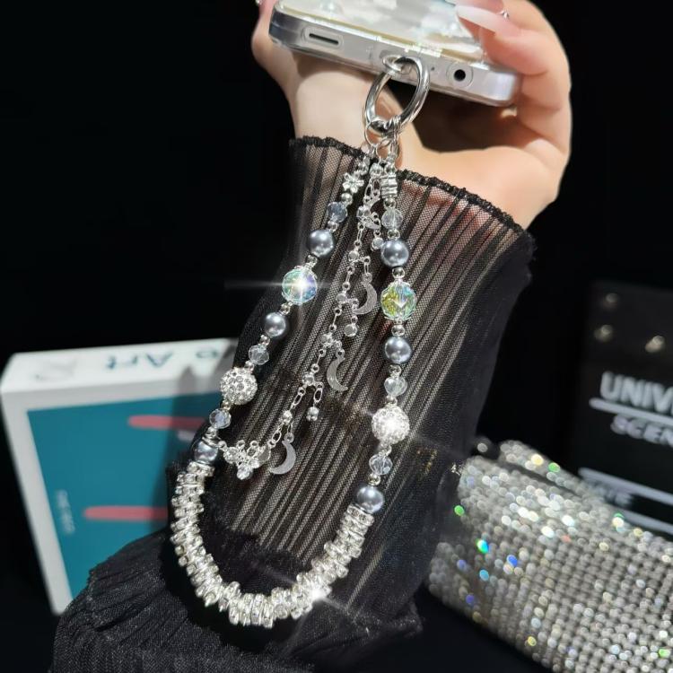 Clay Ball Crystal Beads Chain Mobile Phone Chain(Black)