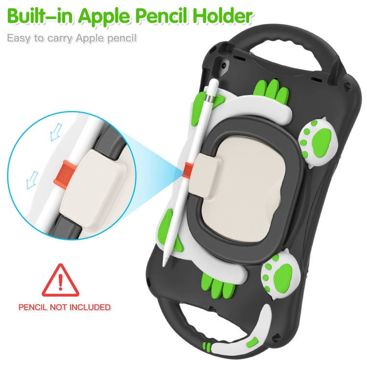 Cute Cat King Kids Shockproof Silicone Tablet Case with Holder & Shoulder Strap & Handle For iPad 9.7 2018 / 2017 / Air / Air 2 / Pro 9.7(Black Green)