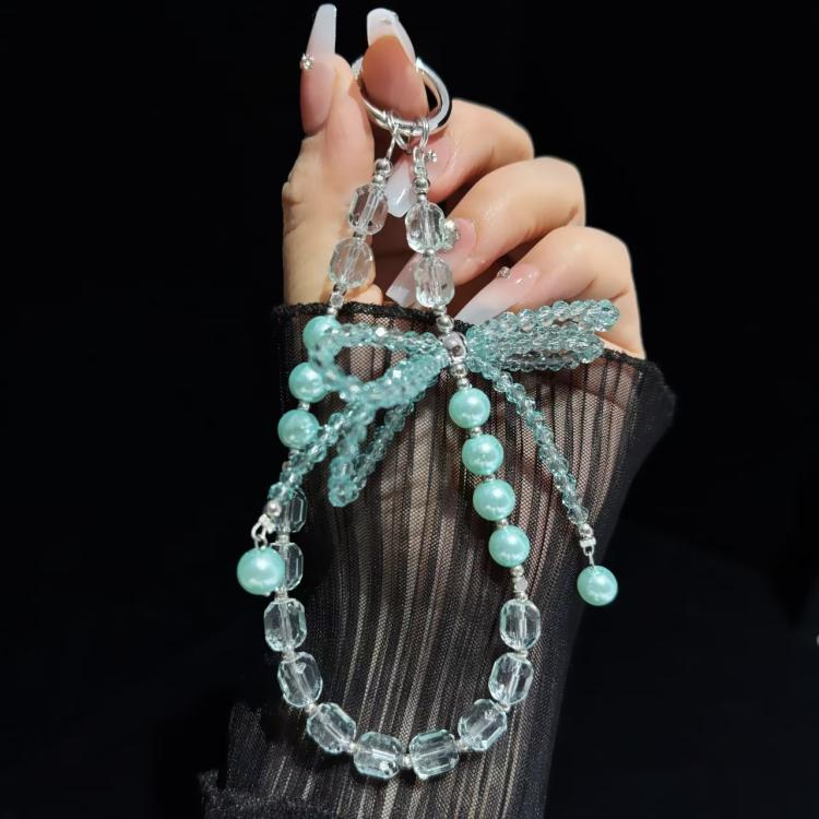 Diamond Crystal Bow Crystal Pearl Phone Chain(Green)