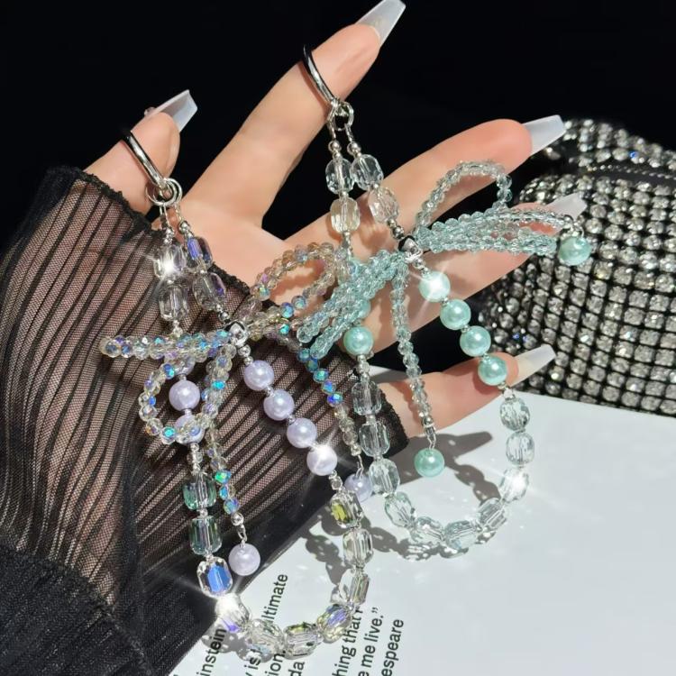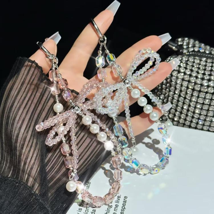 Diamond Crystal Bow Crystal Pearl Phone Chain(White)