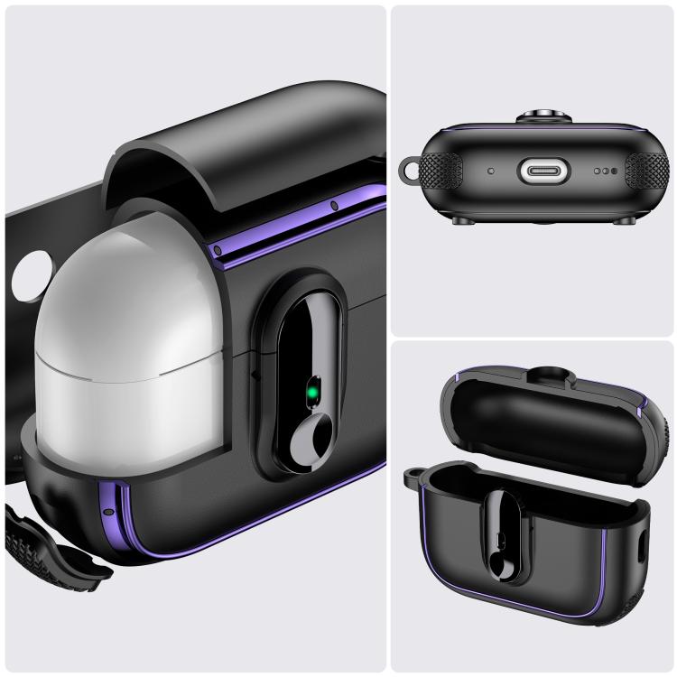 For AirPods Pro Armor Magnetic Wireless Earphones Case with Security Lock(Black Light Blue)