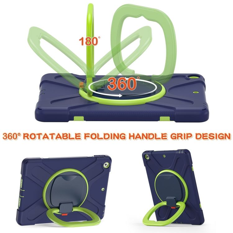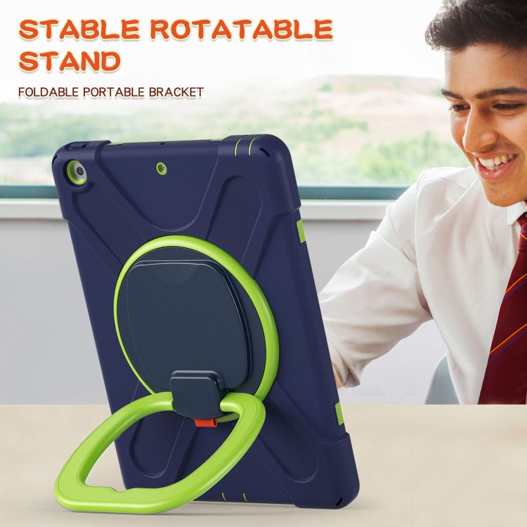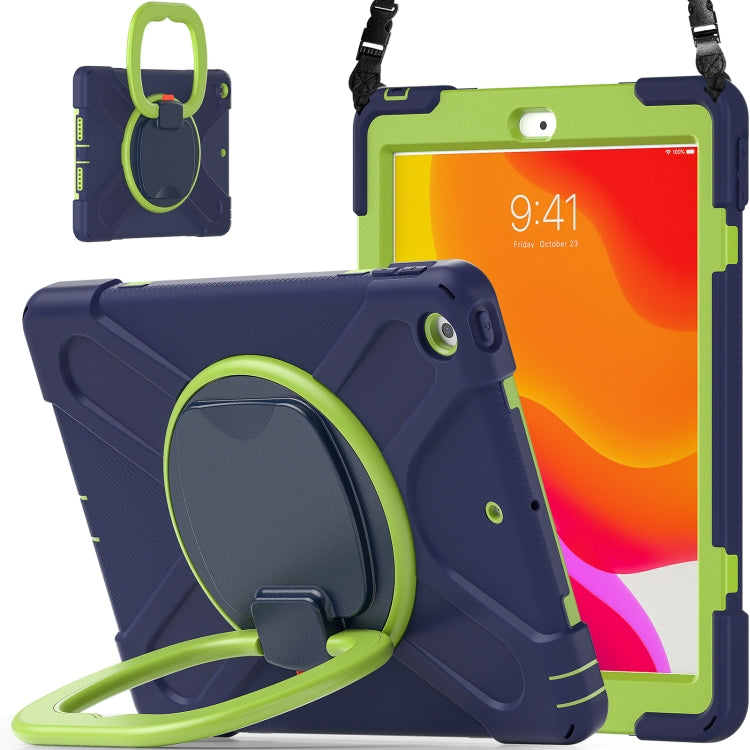 For Apple iPad 10.2 2021 / 2020 / 2019 Contrast Color Silicone + PC Protective Case with Holder & Shoulder Strap(Navy Blue + Yellow Green)