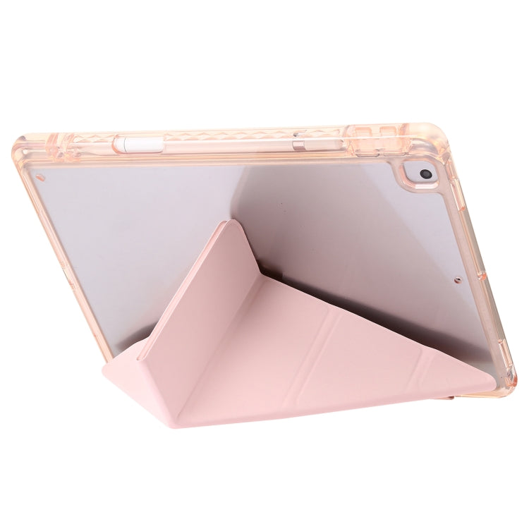For iPad 10.2 2021 / 2020 / 10.5 Clear Acrylic Deformation Leather Tablet Case(Pink)