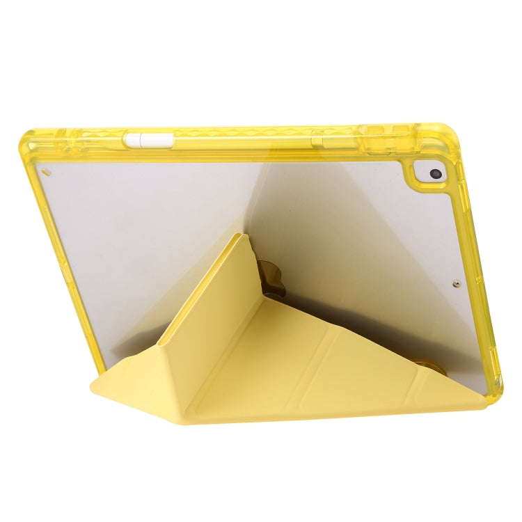 For iPad 10.2 2021 / 2020 / 10.5 Clear Acrylic Deformation Leather Tablet Case(Yellow)